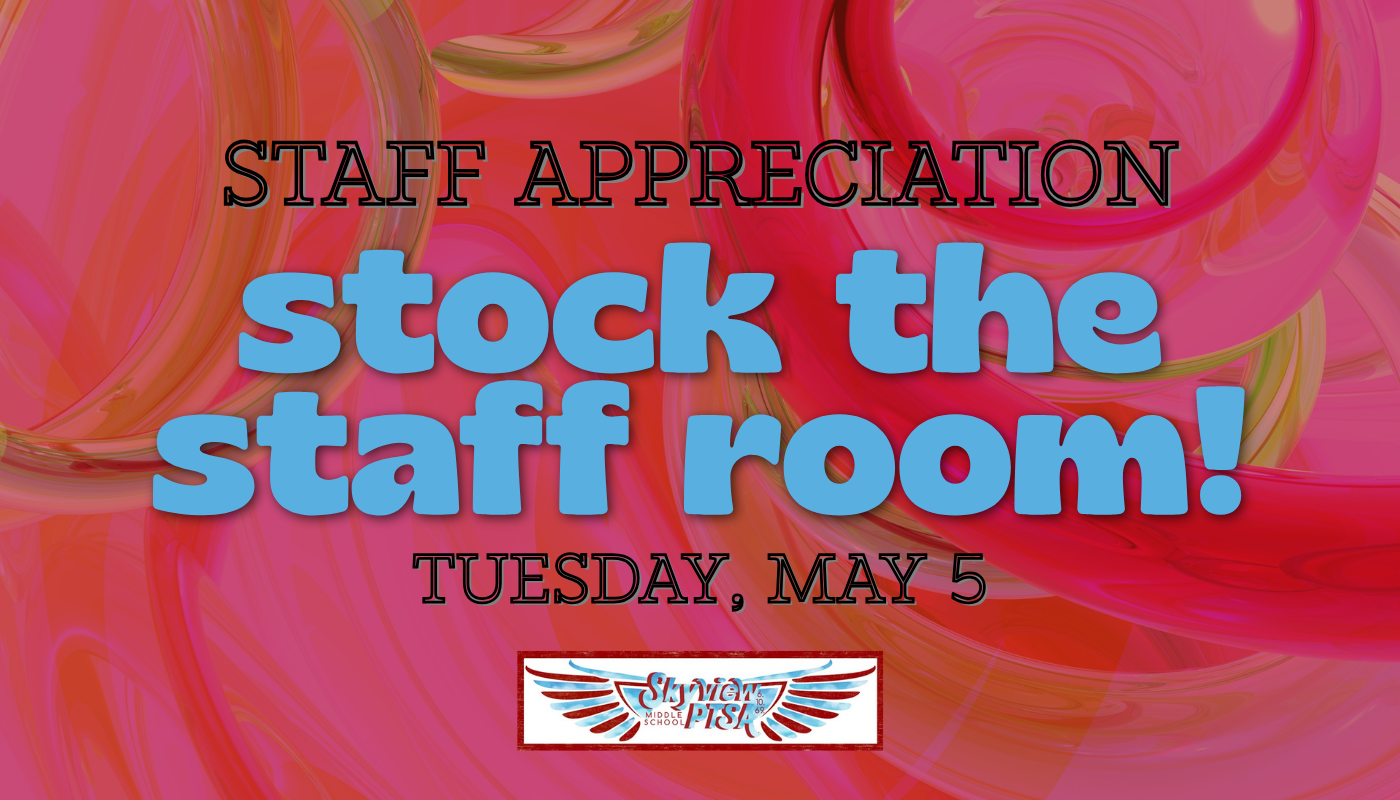 School Staff Appreciation Week is the week of May 4th! So we are doing TWO events this week. The first is this one, a repeat of a staff favorite - Stock the Staff Room!! This is a great one for busy staff who can grab fun snacks to enjoy during the week!